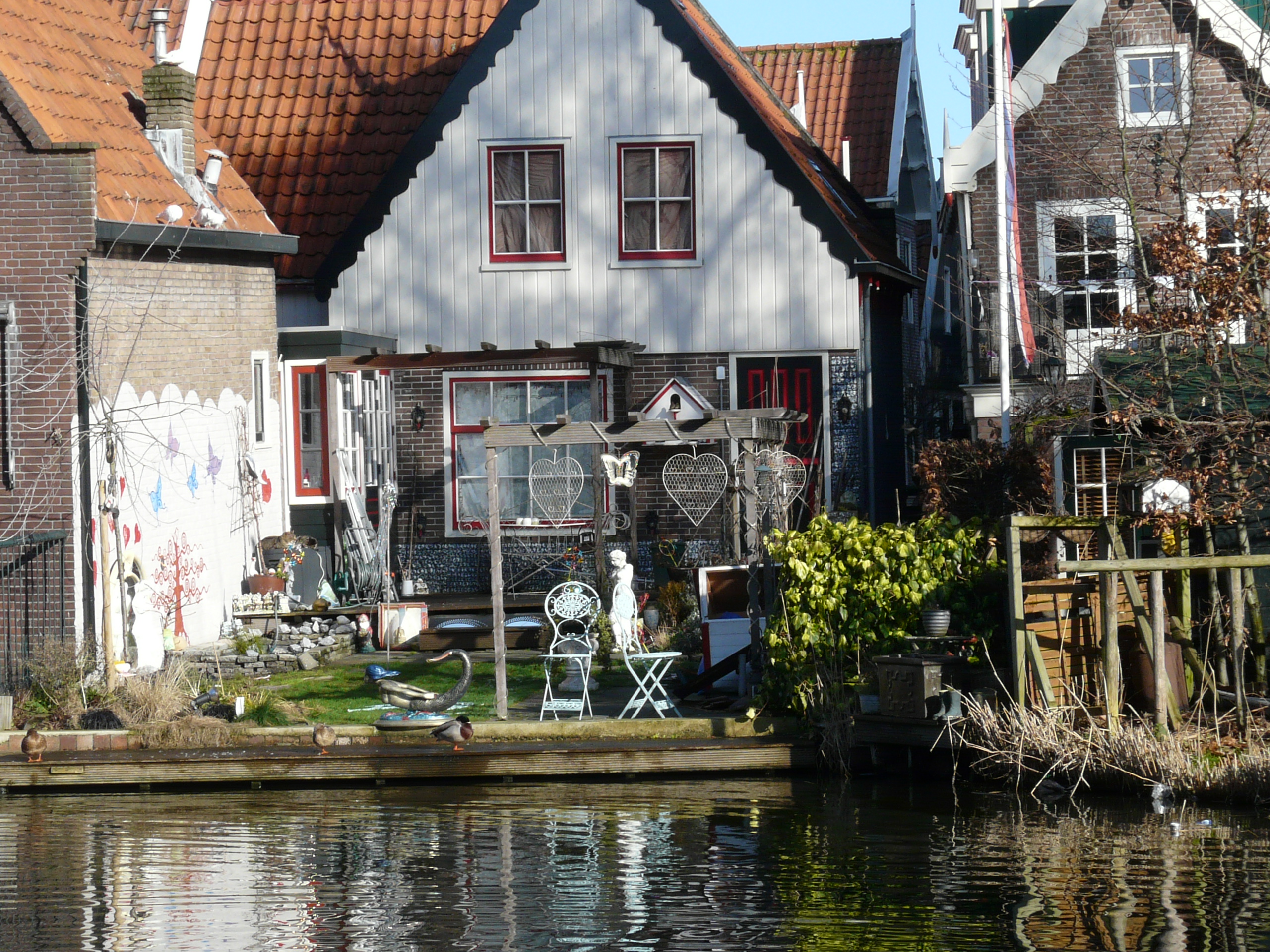 Dejando atrás esta zona nos dirigimos rumbo a Volendam. Por el camino atravesaremos los pólders, nombre que tienen las tierras que han sido ganadas al mar, y por las cuales el nombre oficial de Holanda es «Países Bajos». En la foto donde aparece Christi hincada en una orilla, técnicamente está algo bajo el nivel del mar.