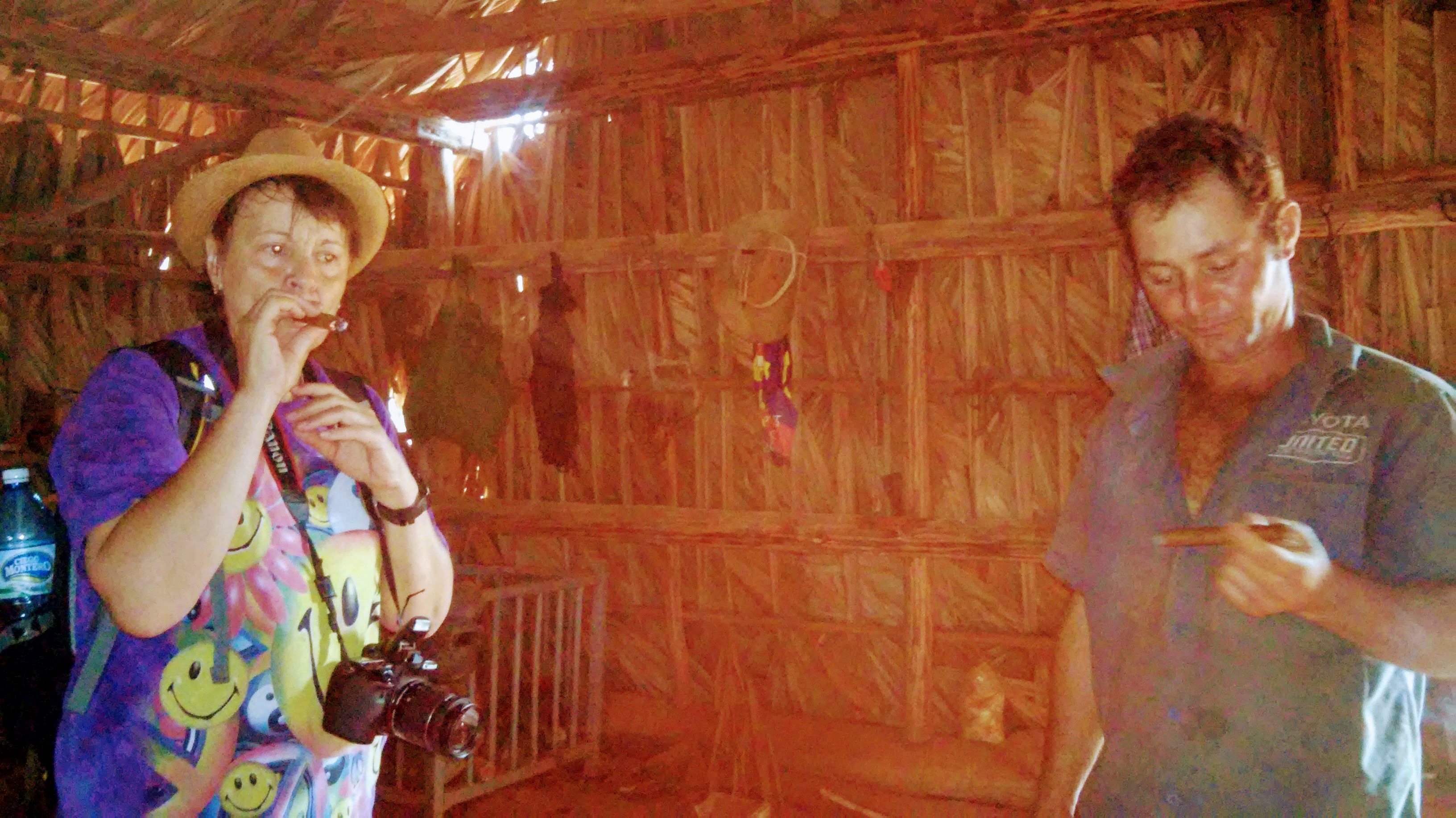 Este valle es un accidente geográfico, como parte de la Cordillera de Guaniguanico. Muy verde todo y tranquilo, casi majestuoso, las que incluyen los mogotes, formaciones montañosas similares a las que se encuentran en China. Muy entretenida la excursión, nuestro guía bastante versado en múltiples temas (contador de estudios, pero por su afinidad con la naturaleza y opción de no-estrés, se dedicó a guía hace 15 años). En el andar, nos detuvimos en la propiedad de un campesino, que aparte de poseer una pequeña crianza de pollos, gallinas, pavos, cerdos y vacas para cubrir sus necesidades, también cultiva tabaco a mini escala que debe vendérselo al estado. La semilla también debe comprarla al estado. Si no logra el rendimiento y la calidad esperada, debe pagar encima…¡Insólito! Bueno…, entre que nos conversamos un puro de los que el mismo fabrica artesanalmente (le di solo un par de piteadas sin aspirar al puro de Christi), surgieron múltiples temas de las políticas imperantes para los campesinos, que me dejaron francamente estupefacto y no hicieron más que reafirmar mi opinión acerca de este tipo de regímenes totalitarios de izquierda. Una vez concluido mi viaje profundizaré en esa opinión, ya que «tendré en el cuerpo» muchas conversaciones de este tipo y por ende, será mejor fundada.