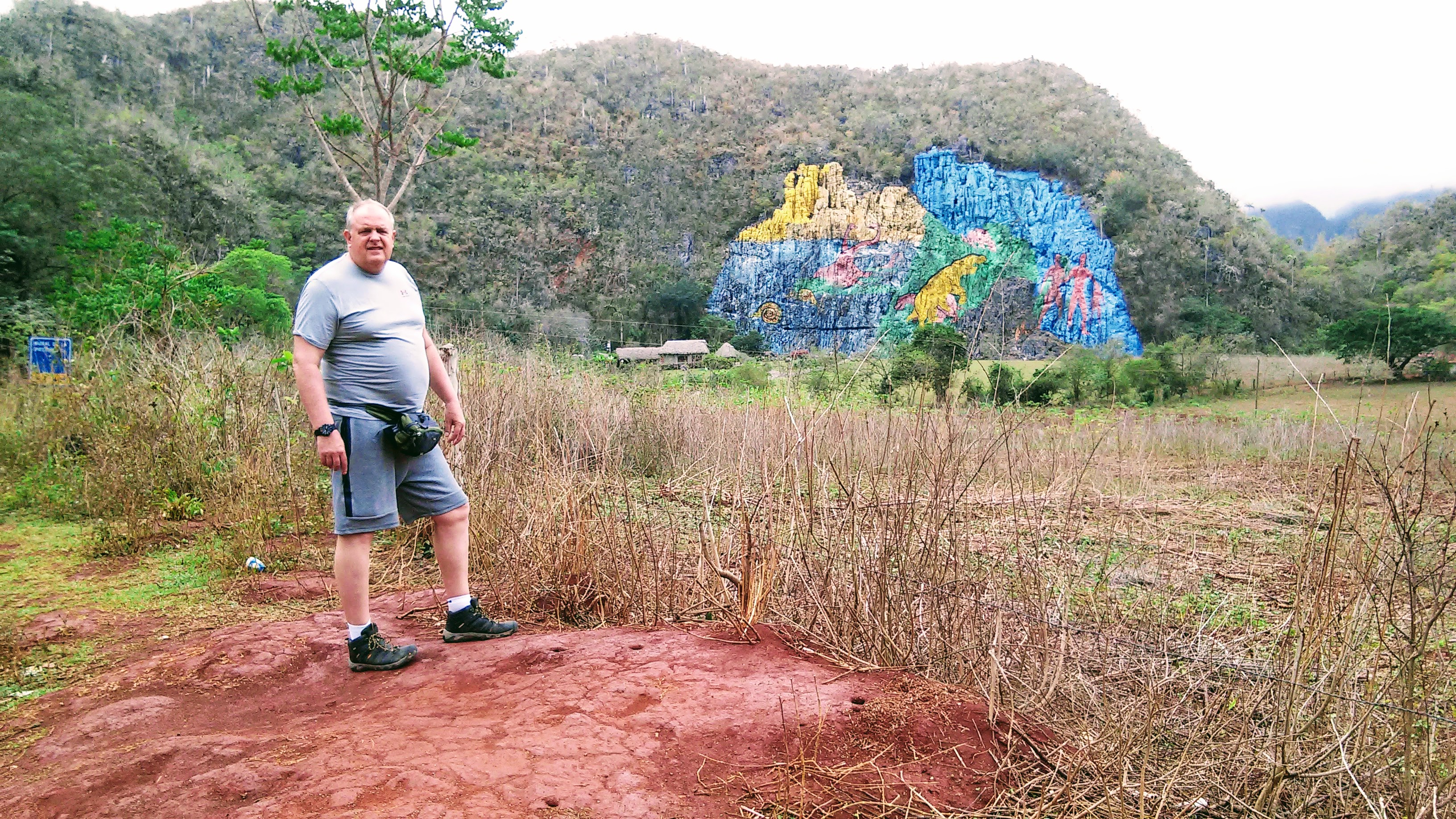 Después de un desayuno casero en una mesa contigua a la cocina en casa de Aquilina, partimos a conocer el así llamado Mural de la Prehistoria, intervención artística de unos 160 m de longitud en el contiguo Valle de Dos Hermanas. Este mural fue pintado sobre una inmensa conformación rocosa del mogote llamado Pita y muestra la evolución de la vida en sentido natural en Cuba. Pintado completamente con pinceles, tomó cerca de 5 años realizarlo.