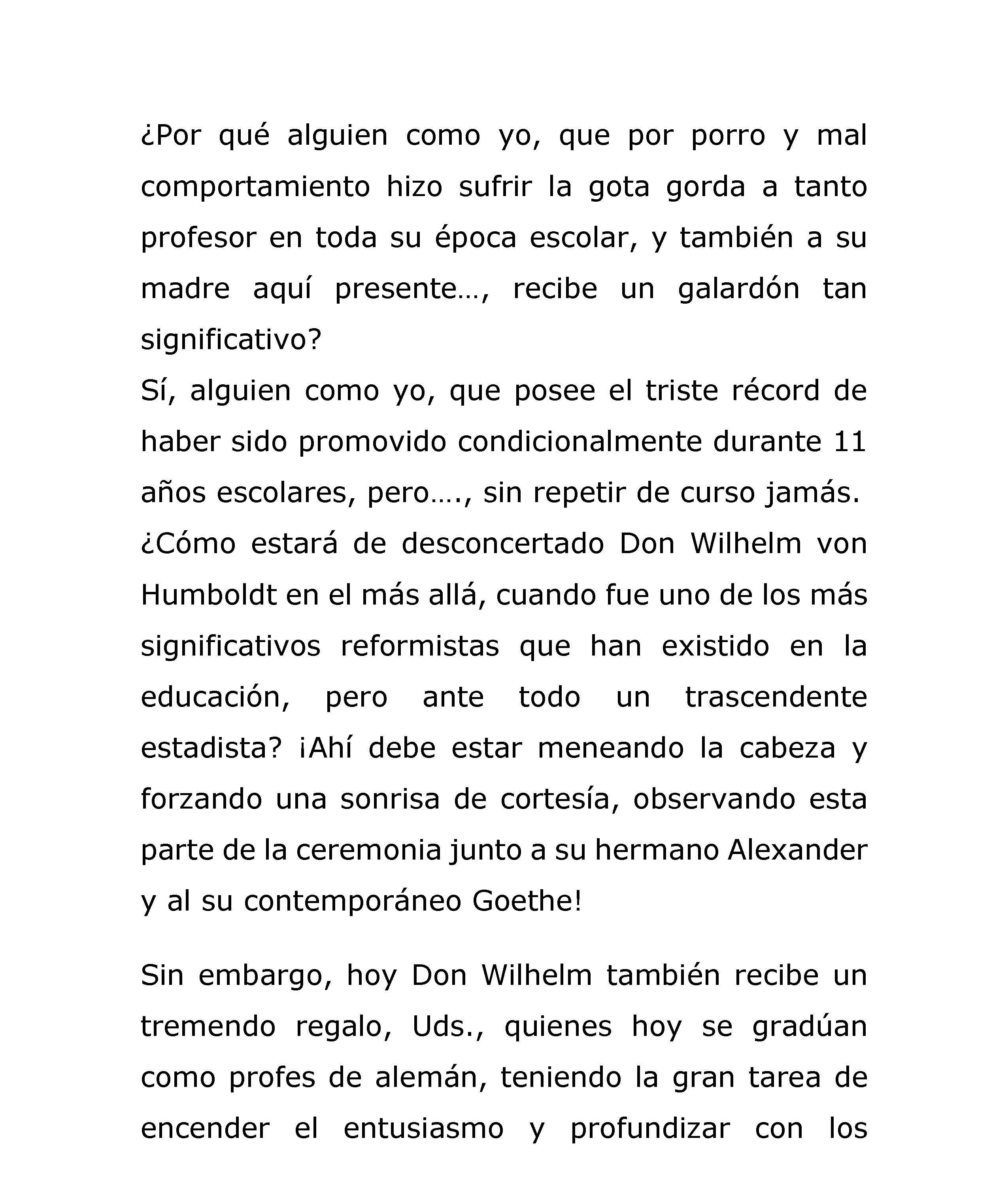 El laudatorio correspondió realizarlo al Presidente del Comité Ejecutivo del LBI, que fue íntegramente realizado en alemán. A continuación los interesados pueden descargar el archivo Word de éste, eventualmente también para lograr alguna idea de su contenido a través de un traductor en línea: