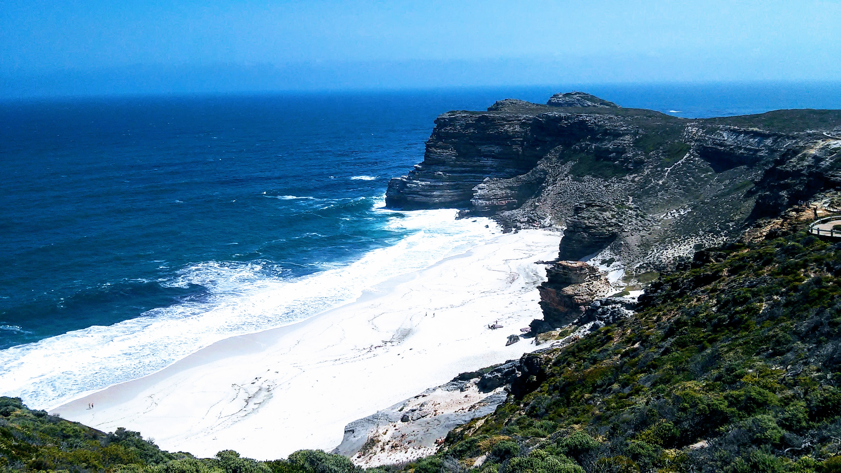 Cerca de el letrero del Cabo se encuentra la playa de Dias Beach, a la que puede accederse a pie, entre otros muchos caminos que explorar realizando agradables excursiones de trekking, pero com verán en la foto, el estado físico no nos animó para bajar y sobre todo subir los más de mil peldaños…