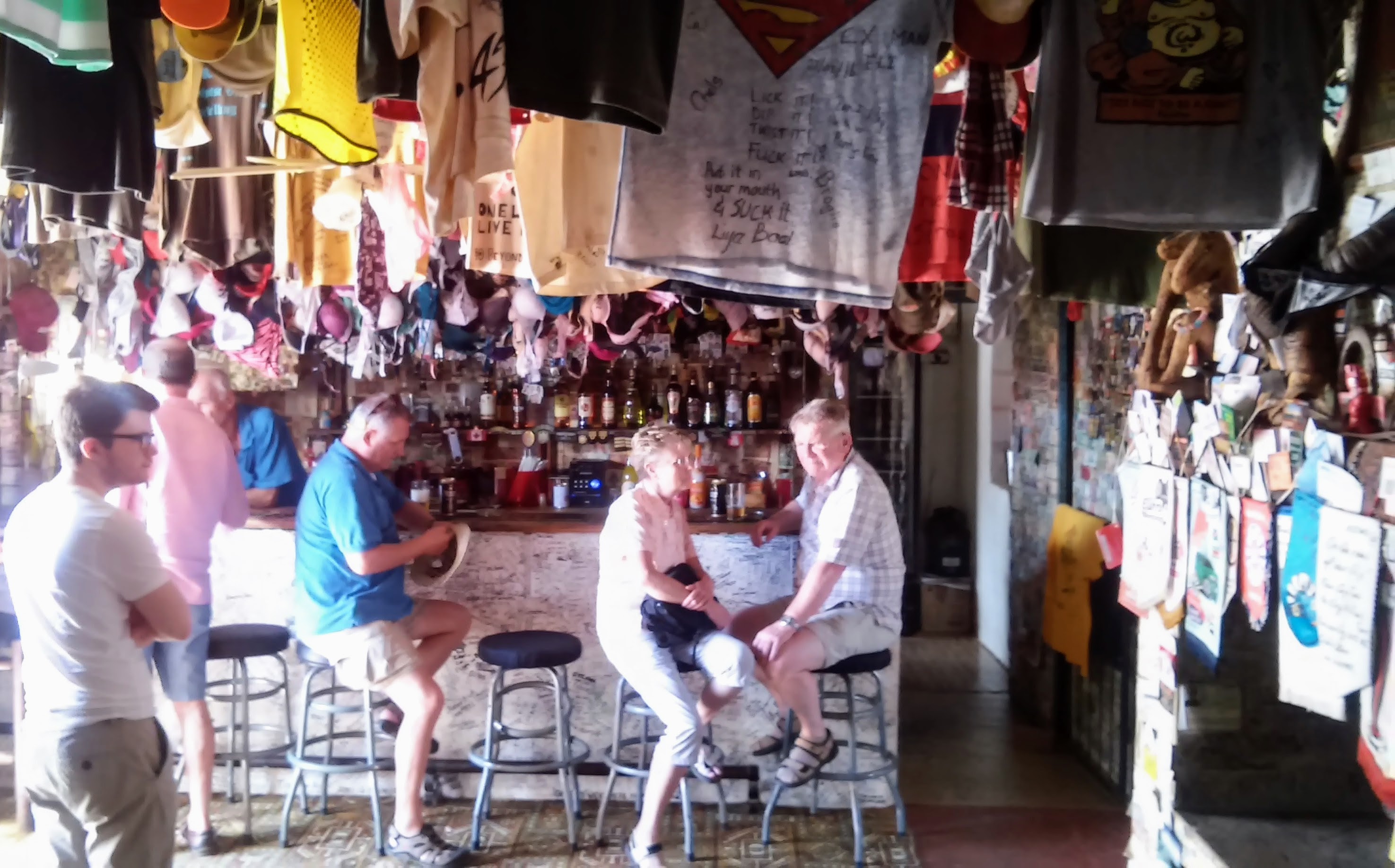 R62, planeando abrir un establo-bodega para vender productos frescos y frutas. Como me contó personalmente, mientras andaba en la playa, sus amigos le jugaron una broma, cambiando el nombre a la tienda, anteponiendo la palabra «sex». Al principio este hombre de la generación y pinta de los míticos músicos de rockeros de ZZ Top, dice haberse enojado por el cambio de nombre, pero como sexo vende, aunque Ronnie no vendiera nada relacionado, atrajo gente. Quedó el nombre y siguió arreglando el zaparrastroso edificio, hasta convertirlo en lo que es hoy. Me pregunto…: ¿cómo habrá sido antes….? Sus amigos pasaban a conversar, tomar unas cervezas y tirar un par de carnes al fuego. Durante una de estas veladas, alguien sugirió: «¿Por qué no abres un pub?» Y así fue que se convirtió en una parada obligada en la ruta, con visitantes de todo el mundo, una parada de descanso de ciclistas ruteros, camioneros y por supuesto turistas. Aparte de su tienda, posee un pintoresco bar en donde muchos visitantes escriben un mensaje en las paredes, dejan su polera o remera, así como muchas mujeres han dejado sus sostenes colgados, como humorada. Es entretenido, te topas con personas interesantes para conversar y prosigues tu camino.