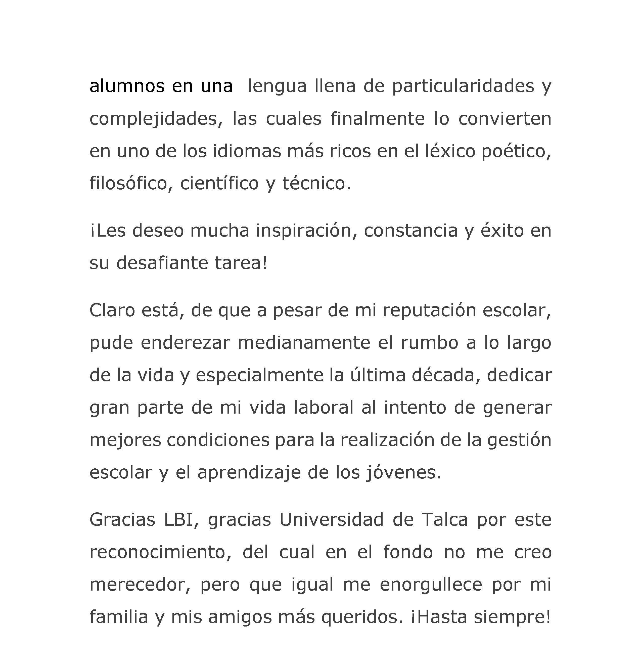 Sé que será una celebración de 50 años de egresados del colegio, llena de cariño y alegría, donde la confianza y el respeto que siempre nos han unido se harán presentes. Aunque no estaré físicamente, mi corazón estará con todos ellos, recordando todas las vivencias que compartimos y los lazos que hemos construido a lo largo de los años.